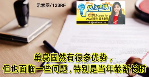 除了遗产问题,单身人士还应提前考虑如何确保自己和财产在年老、发生意外、失智或离世等情况下得到妥善照顾、管理和安排,以及谁能为自己做出重要的医疗决定。即使有兄弟姐妹,婚后的兄弟姐妹也有自己的家庭责任或需要搬迁到其他地区。因此,我们应尽自己的责任,提前通过透过遗嘱、信托或授权书,为自己制定更好的应对方案。