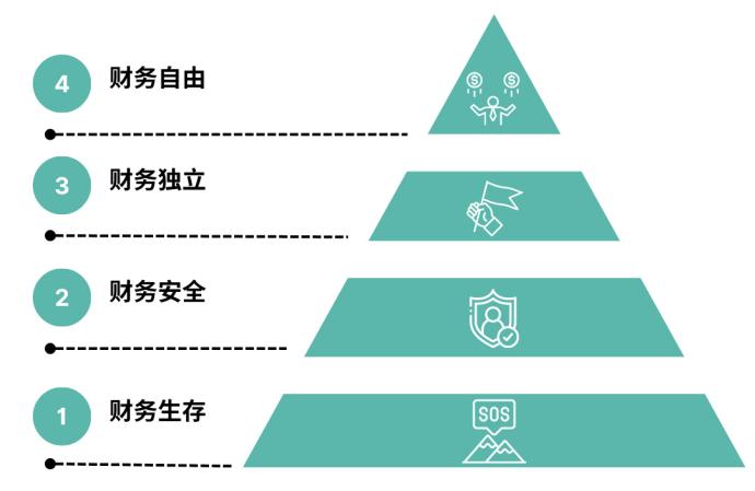 如果一个人不是富二代,想达到财务自由不是一蹴而就的事情,而是需要精心规划、实践和不断的行动才能达到。我将这个过程简单分为4个阶段,这样你可以更清晰地了解自己所处的阶段,并知道下一个目标是什么。